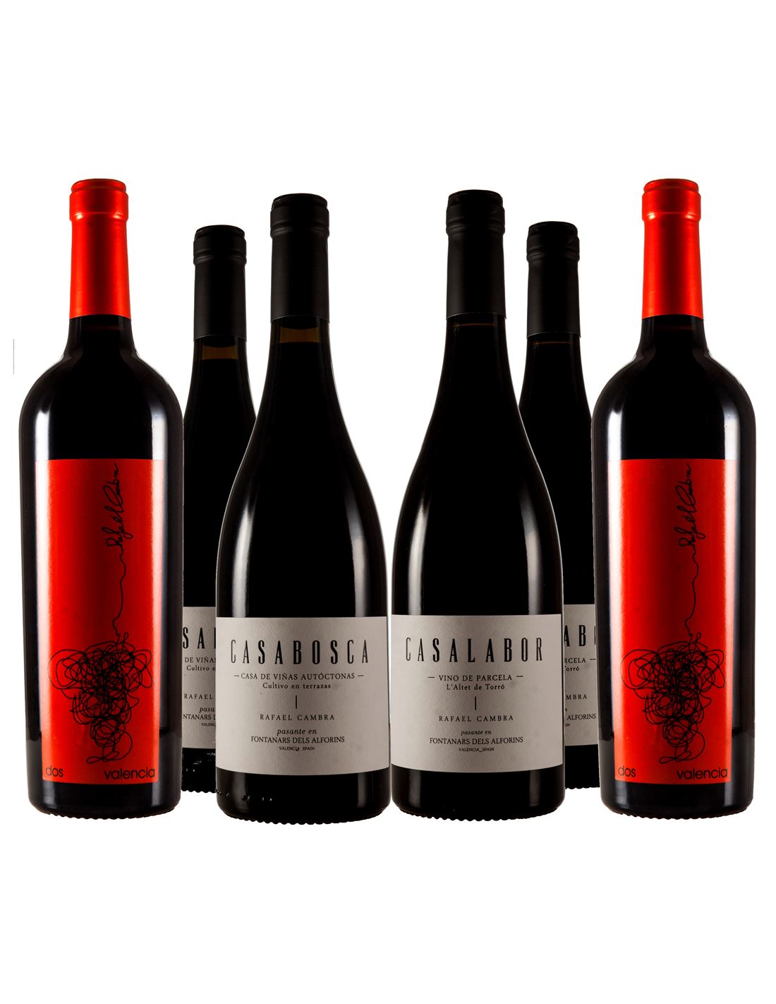 El primer vino es el Casalabor 2015, un vino de una única parcela de 1,3 Ha. llamada El Altet del Torró, situada a 680 metros de altura y plantada exclusivamente con la variedad Arco que estaba prácticamente desaparecida y que se cultivaba en el extremo occidental de la provincia de Valencia. El vino se ha elaborado de manera tradicional con fermentación en depósitos de acero inoxidable de 2.000 litros. La crianza posterior se realiza en barricas de roble francés de 500 litros usadas durante un periodo de 14 meses. El vino es intenso en boca, con mucha fruta y tiene potencial de mejora en botella. La producción quedó limitada a 1.200 botellas. Un tesoro.