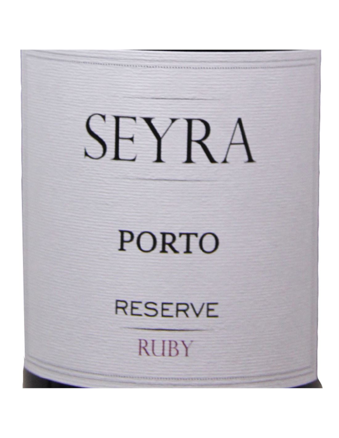 Porto Seyra Ruby Reserva es una vino procedente de la fermentación conjunta de distintas variedades de uva en lagares de piedra que posteriormente envejece en barricas de roble durante unos tres años. De color rubí intenso, es un vino exuberante en aromas y fruta. Puede servirse ligeramente fresco. Contenido en azucar de 105 gramos por litro. Todos los vinos que se integran en esta botella proceden de las uvas de esta propiedad familiar, Quinta de Bulas, situada en el Alto Corgo.